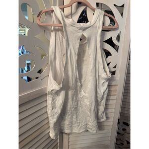 Rare HTF sold out 2020/2021 season white w/ rose gold block letter logo across front- split keyhole back style stretch modal camo/tank top/shirt/muscle tee ect