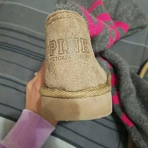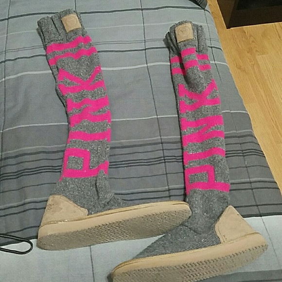 Grey and Pink Victoria's Secret sweater boots. Hardly worn, never worn outside. Near new condition.