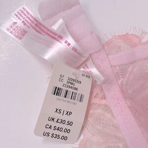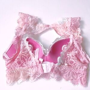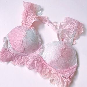 Victoria’s Secret light pink and blue lacy bra; no wires. New with tags. Size extra small.