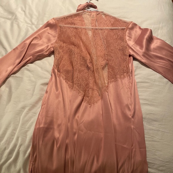 Never worn! New without tag! Beautiful lace details with wrap tie in soft mauve