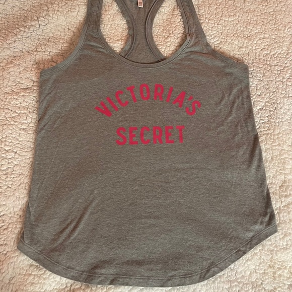 Size MEDIUM racer back tank top, light grey with hot pink lettering and a small angel wing logo on the back, no flaws - great condition!