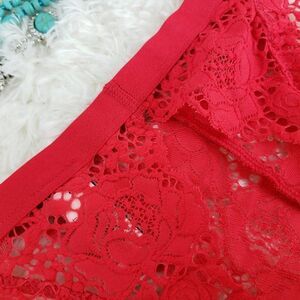 Victoria's Secret Red Crochet Lace Peeka Boo Cute CHEEKINI Medium