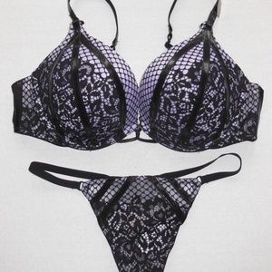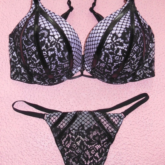 Victoria'S Secret SCANDALOUS LIMITED EDITION BOMBSHELL Push-up Bra & Thong BNWT Bra Size: 32C, 32D Panty Size: M, L Start a love affair with lace. Designed for private engagements, the ultimate lift-loving push-up is layered in fishnet lace. With beautiful, highly textured lace, it’s an irresistibly glamorous lingerie essential. The ultimate lift-loving push-up instantly adds 2 full cup sizes for the most cleavage and fullness.