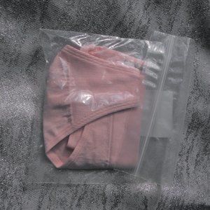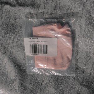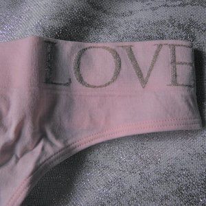 Seamless thong from VS, gold embroidered "LOVE" on waist band. Color according to label is millennial pink. NWT Available sizes S, M & L.