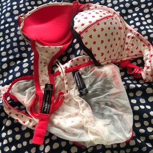 Heart print. Hearts, Queen of Hearts, Alice in Wonderland, sexy, lingerie, feminine, romantic, matching set,