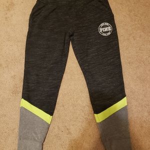 Full zip sweater and jogger style pants. Pants do have small bleach stains on the left pant leg, noted with pic 4&5. Both are mediums.