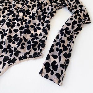 VS Sheer Long Sleeve Bodysuit with Black Velvet Floral Patterning