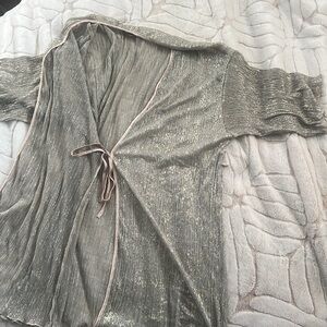 Perfect condition!! The only thing is that the main sting for the robe is missing, but it can eas be replaced with a similar one. No obvious evidence of wear and no flaws such as stains & holes. Super lightweight and gorgeous! The top has strings to tie a bow in the back ☺️
