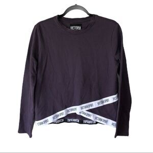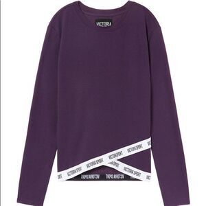 Victoria’s Secret, Victoria Sport logo crossover crewneck pullover sweatshirt in nightshade dark purple. Size womens XS.