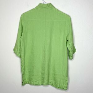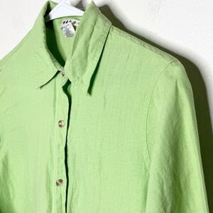 VS Sport Ltd Five Diamond Green 100% Linen Short Sleeve Button Up Shirt -Women’s