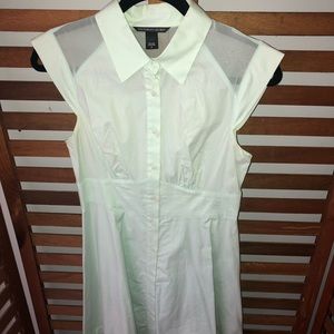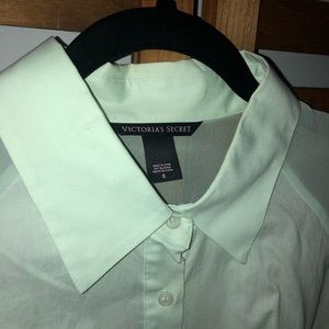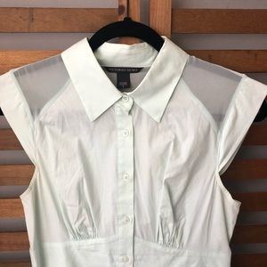 I tried to capture the color of this dress by using the flash but it's hard to see- the color is a very light seafoam green. This dress is fitted and buttons all the way down.