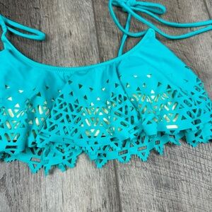 In amazing condition. Teal colored with light yellow colored Section underneath. Ties on the shoulders top only.