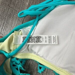In great condition. Teal colored top with cutout details. Light yellow underneath. Ties at the shoulders. Bundle to save on shipping. Top only!