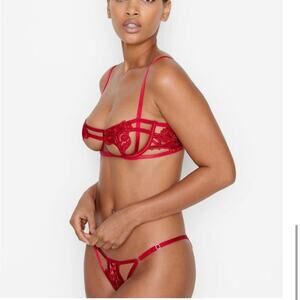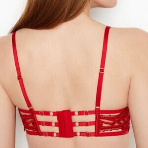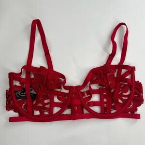 VS VERY SEXY Strappy Embroidered Open Cup Balconette Bra 34DD Red