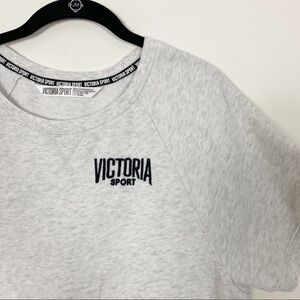 VS Victoria Sport Heathered Grey Short Sleeve Sweatshirt Top. Large. Soft fleece lined. Excellent pre-owned condition.