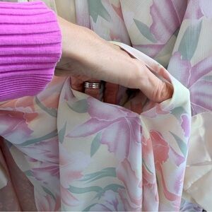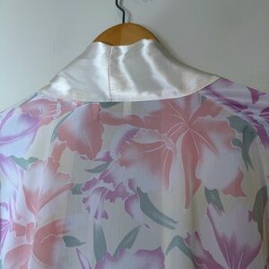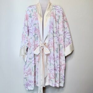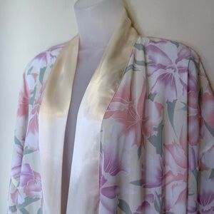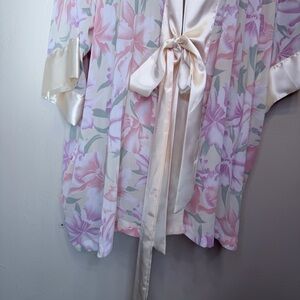 VS VTG Gold Label Pastel Floral Semi Sheer Belted Satin Kimono Hip Pockets Robe