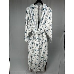 Elegant floral robe with satin finish. Soft cream and pink hues. Perfect for lounging.