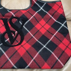 VS Victoria’s Secret plaid large tote bag snap closure red and black with embroidered VS logo. Inside pocket. New with tags.