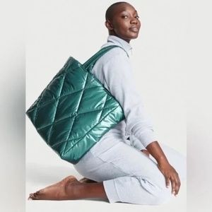 Victoria's Secret Puffer Tote Exclusive for the Christmas Holiday 2022 Collection Metallic Green