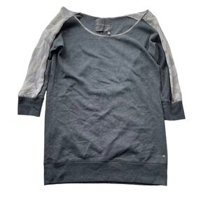VS Victoria's Secret Tunic Sweatshirt Gray Medium Scoop Neck 3/4 Sleeve Camo