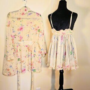 VS Vintage 2pc Yellow Floral Chiffon Gown and Robe Set