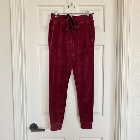 ❤️ VS Wine Red Kir Velour Jogger Pants with Satin Bow Tie and Side Pockets