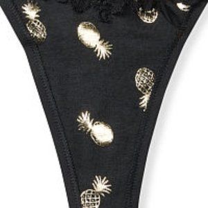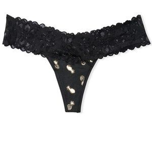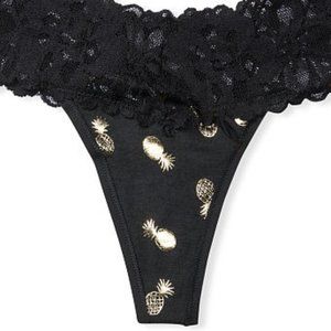 VS XS Pineapple Thong Lace Waist Panty Black Pineapple NWT