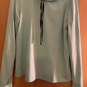 Gently worn. So comfortable. Mock neck top with armholes for thumbs