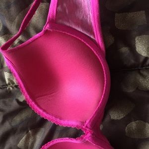 Victoria's Secret Body By Victoria all over hot pink lace push up bra. The lace is seamless under clothing! Little pink bow in the middle 🎀