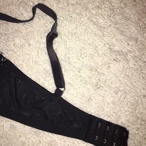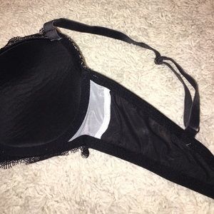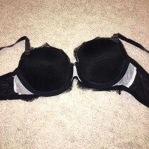 Lace VS bra with rhinestones, felt shoulder straps and mesh straps where it hooks. This fits like a regular bra, it is NOT a push up!