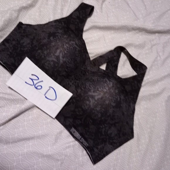 Have three VS bras . The sports bra is in great condition . They grey one great condition and the black one is in good condition.