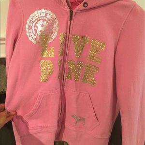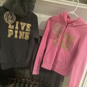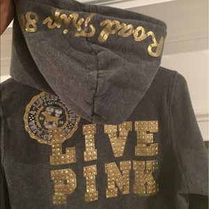 VS pink hoodie zip sweatshirt bundle . Gray pink rhinestones cute!!! $14 each or $25 total