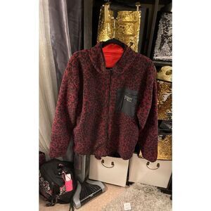 Victoria’s Secret pink maroon neon Sherpa/teddy jacket this jacket is reversible one side is a leopard and black maroon the other side is a neon if you have any questions please feel free to message me this is a very rare item it’s size extra large and is in great condition there is a small pole on the inside collar the neon colored side