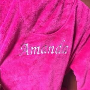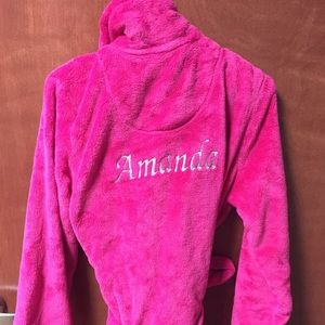 Worn one time. Gift from ex. Size M VS pink color robe with silver name printed on back. Beautiful stitching!!!