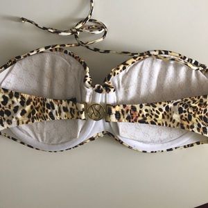 Cheetah strapless push-up with gold detail. EUC includes a strap to make it a halter! Size 34D