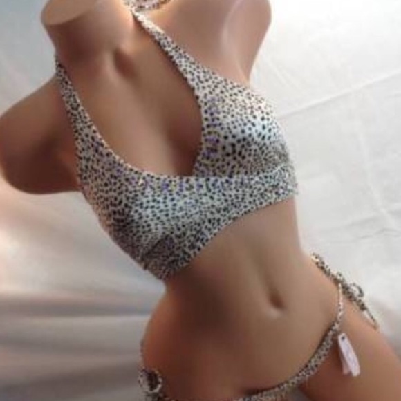 Leopard print Wrap around top, size XS. Top has purple beading. No trades. Never worn- no tags.