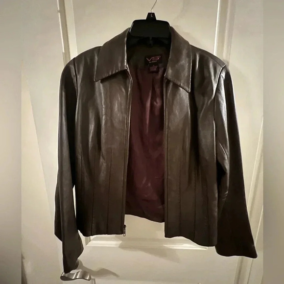 VS2 by VAKKO Deep Chocolate Brown Fully Lined Lambskin Leather Jacket- Size M