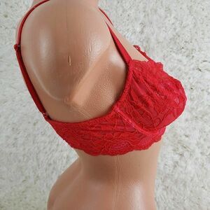 Victoria's Secret 34C Red Lace Mesh Unlined Balconet Sexy Bra