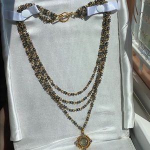 The item is in good condition. It’s new and has never been used. This necklace can be used two different ways. There is an adjustment on the necklace. I will post more pictures for you to see.