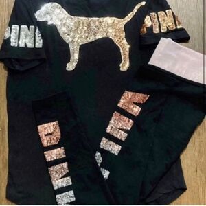 VS PINK OMBRÉ BLING TSHIRT/ YOGA LEGGINGS OUTFIT SET S