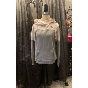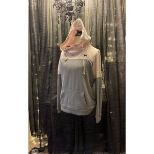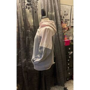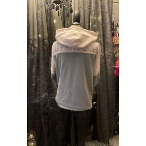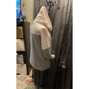 21”wx24”L tunic length oversized ( could fit small med or large depending on fit wanted ) Sz Small(S)pullover bling hoodie:hooded sweatshirt grey/Light pink EUC like new