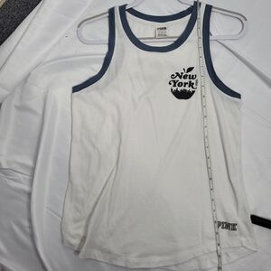 Victorias Secret Pink New York white double sided image graphic tank. Oversized fit. There is some washwear and a small spot that has not been treated. Great for working out!