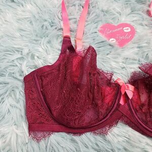 VS Sexy Chantilly Lace Burgundy Unlined Demi 32DD