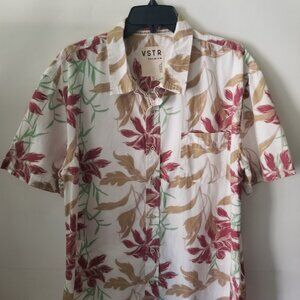 VSTR Men's XXL Off White Cotton Floral Hawaiian Short Sleeved Button Up Shirt
