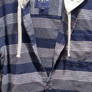 VSTR Men's/Adult Lightweight Flannel Jacket Hoodie - Large - Blue/Gray