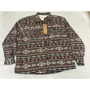 VSTR Premium Button Up Collared Fleece Lined Jacket Western Design Size XXL