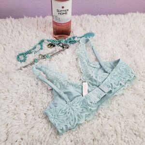 Victoria's Secret The Date Blue Light Lace Mesh Unlined Bralette Bra Xsmall