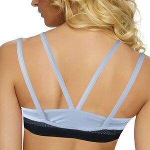 Medium support. Pullover style Performance & Fabric Perfect for spinning, kickboxing and circuit training Logo elastic band Nylon performance fabric with 4-way stretch Body-Wick keeps you cool & dry Machine wash. Tumble dry. Imported polyester/spandex