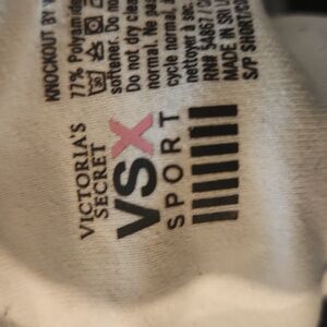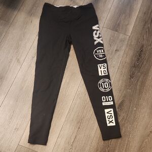 Chic black leggings with striking white VSX graphics. Ideal for fitness or everyday style. Size Small waist 12 inches mid rise 10 inches inseam 25 inches