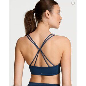 New Without Tags! This item is brand new and has never been worn, but doesn’t have tags and/or is missing the original packaging. The item doesn’t have flaws or imperfections and the brand name on the inside neck label is partially crossed. The VSX Elevate™ Liquid Shine Stretch-Comfort Sports Bra in Midnight Sea, size Medium, is a stylish and functional activewear piece designed for active women. Featuring a solid blue color with crossback straps and a pullover closure, this sports bra offers medium support and a comfortable stretch fit. Made from a blended fabric of polyester, polyurethane, polyamide, and elastane, this bra is machine washable for easy care. It is accented with a logo detail and is ideal for various activities such as gym training, cross training, yoga, pilates, and racing. Perfect for those who need a reliable and supportive sports bra during their workouts.
